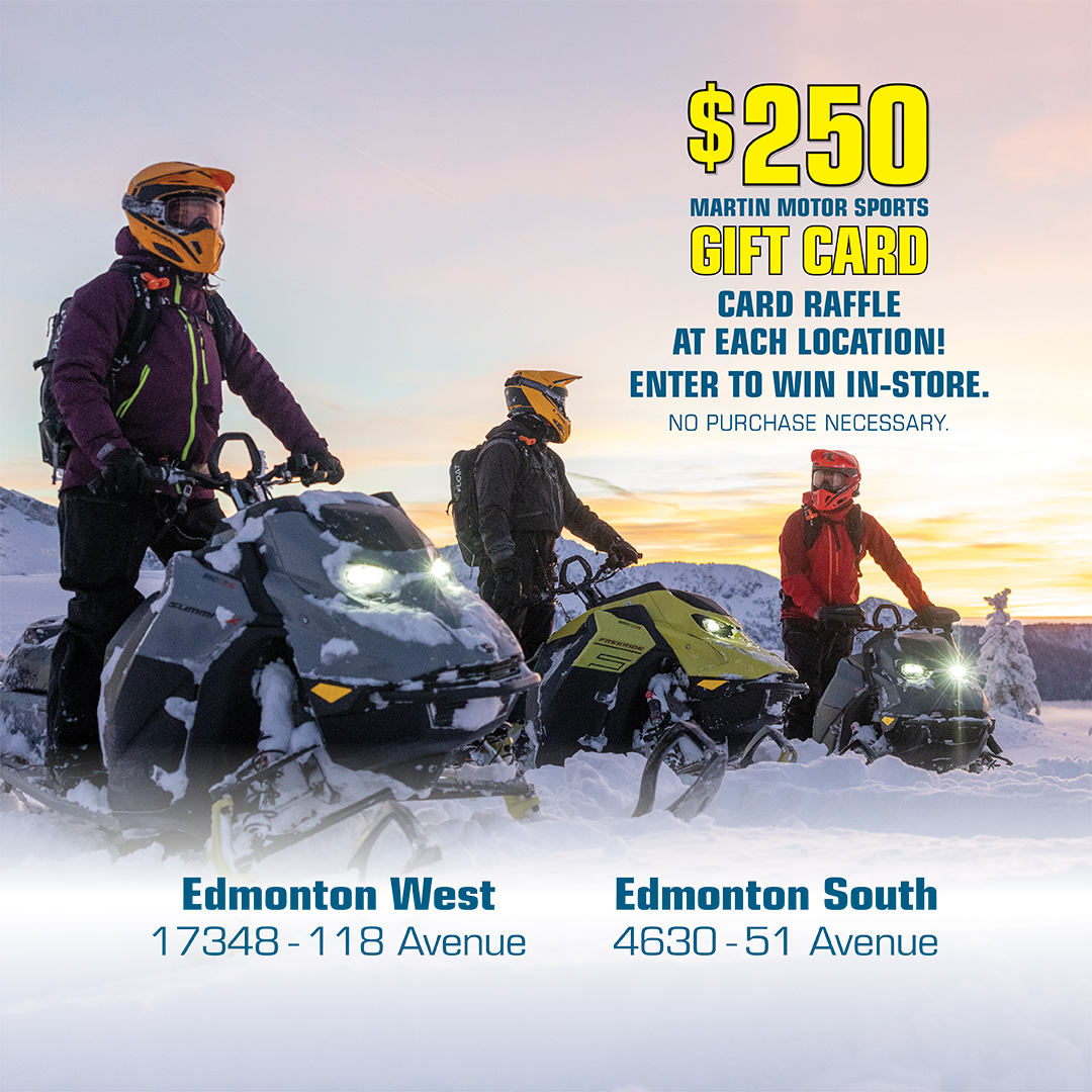 We're giving you a chance to win a $250 Martin Motor Sports gift card just for stopping by - no purchase necessary! Simply come to the store, check out the event and add your name to the grand prize draw. One gift card will be given away at each location.
